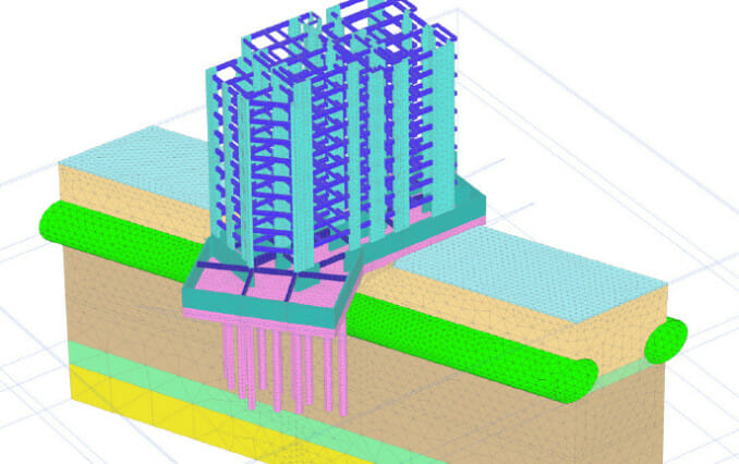 In terms of the problems that can be addressed, full numerical analysis can be used for a range of soil-structure interaction problems and situations where deformations are important, such as a structure’s stability, or the effect that the construction of one structure has on another structure. The following is not an exhaustive list, but it illustrates the versatility of this approach in which linked thermal, hydraulic and mechanical behaviour can be considered: