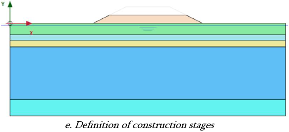 e. Definition of initial stress condition and construction stages: