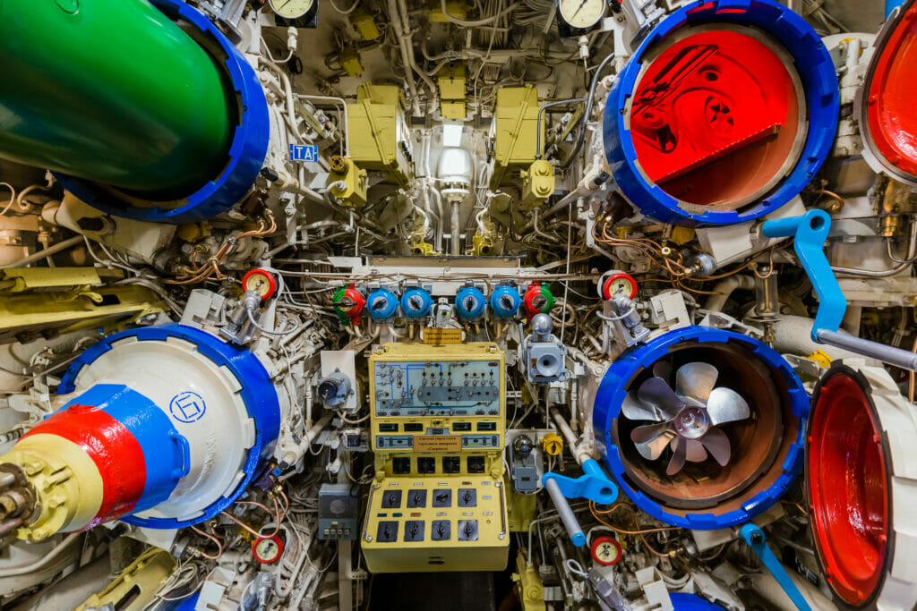 Torpedos can be up to 8m long and weigh up to two tonnes. They must be forcibly ejected from the front of the submarine with enough power to ensure it clears the turbulence, created by the boat moving forwards through the water, and also does not get sucked back into the boat. In order to achieve this, there has to be careful control of extremely high pressure air and water to create a pulse, which ‘pushes’ the torpedo out, whilst simultaneously controlling the internal and external openings