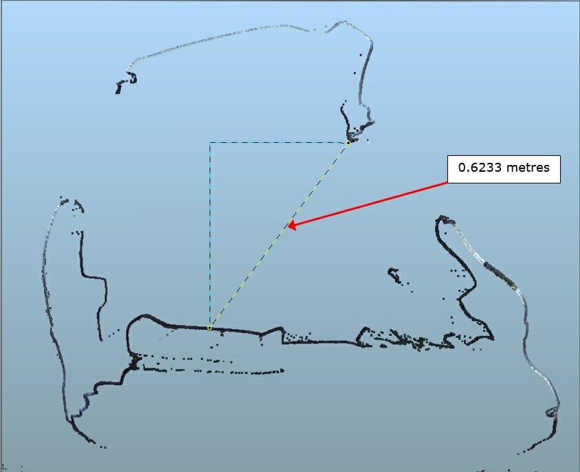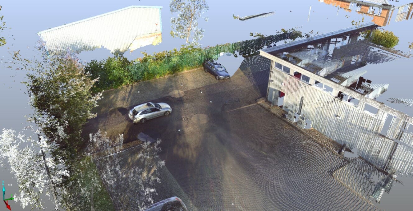 A further advantage of a 3D model is that it can be viewed from any angle. Figure 2 is a screen shot showing the 3D model that resulted from a tripod-based laser scan of a car park. All of the scanning work was carried out at ground level. However, by moving the viewing point, it has been possible to create the illusion that a photograph has been taken from an aerial platform at some position over the scene. Furthermore, by viewing a model from directly overhead, precise scale plans can be created quickly and accurately by creating outlines and marking key features.