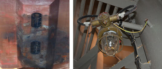 However, lights and bulk cargoes are not a good combination. Hawkins have recently seen a number of new build ships (both Panamax and Handymax) where lights have been fitted in the ladderway, but no instructions have been given to the crew on isolating the lights when loading cargo.