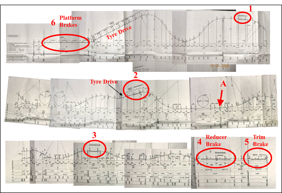 Unfortunately, by the time of my investigation in 2006, the Magnum Force had already been sold, dismantled and installed in a theme park in Mexico City. So, barring a trip to Mexico, all that was available to calculate the timing of the rollercoaster was the original technical drawings produced by Schwarzkopf.