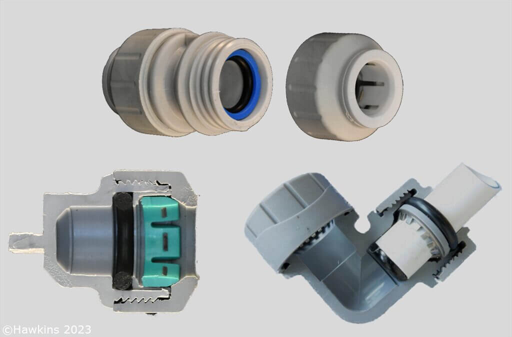 Manufacturers are marketing a broad range of push-fit fittings with slightly different shapes and functions, but the fundamental concept is based on three main elements: