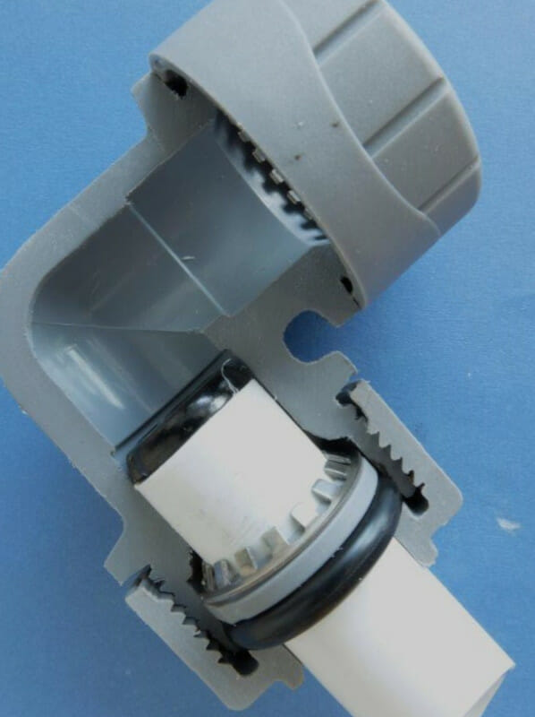 Two of the fittings fractured within months of each other. This led to large escapes of water and the relocation of the residents, not just once but twice! Examination of the parts and a review of the original installation revealed that the pipework did not have adequate support i.e. from a suitable clamp or bracket, and as such the fitting was under stress from the weight of the pipework protruding from it. This caused cracks to initiate in a threaded plastic component, ultimately causing the fitting to fracture due to creep.