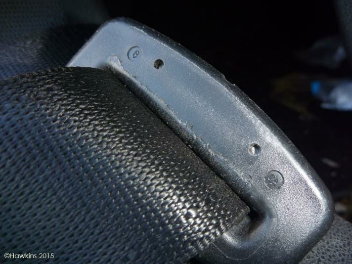 It can be quite straightforward to see positive evidence that a seatbelt was in use, either from friction markings to the plastic parts on the buckle or transfer to the webbing. However, the absence of such marking does not necessarily mean the seatbelt was not in use and often in low-speed collisions, no marking might be caused. The collision event, and the directions of any impacts much all be considered.